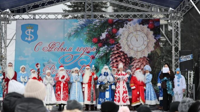 Новогодние персонажи прошли парадом по центральной части города и собрались на центральной площади у главной новогодней ёлки района, чтобы определить лучшего Деда Мороза и Снегурочку. Актёрское мастерство, костюмы участников, харизму и умение привлечь внимание публики оценивало жюри.