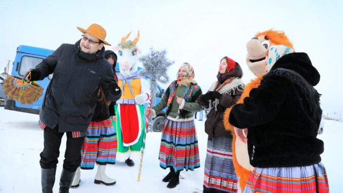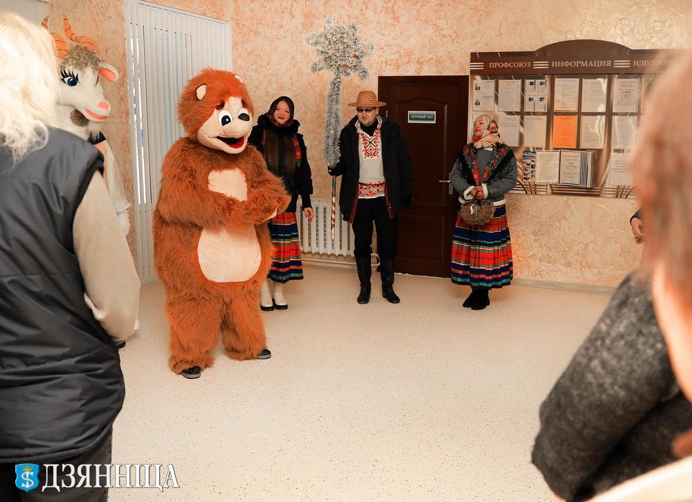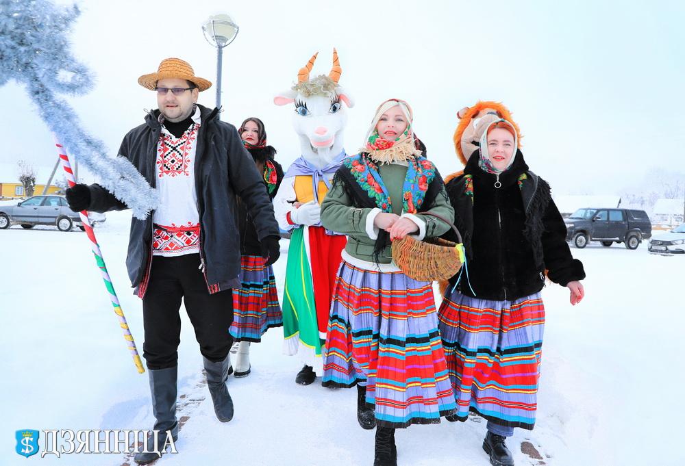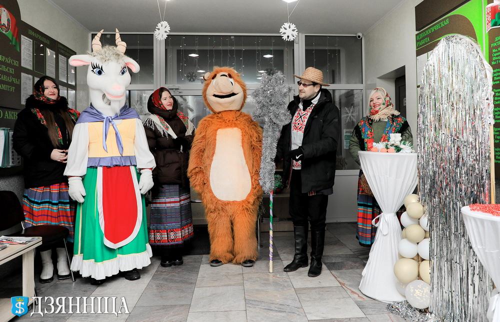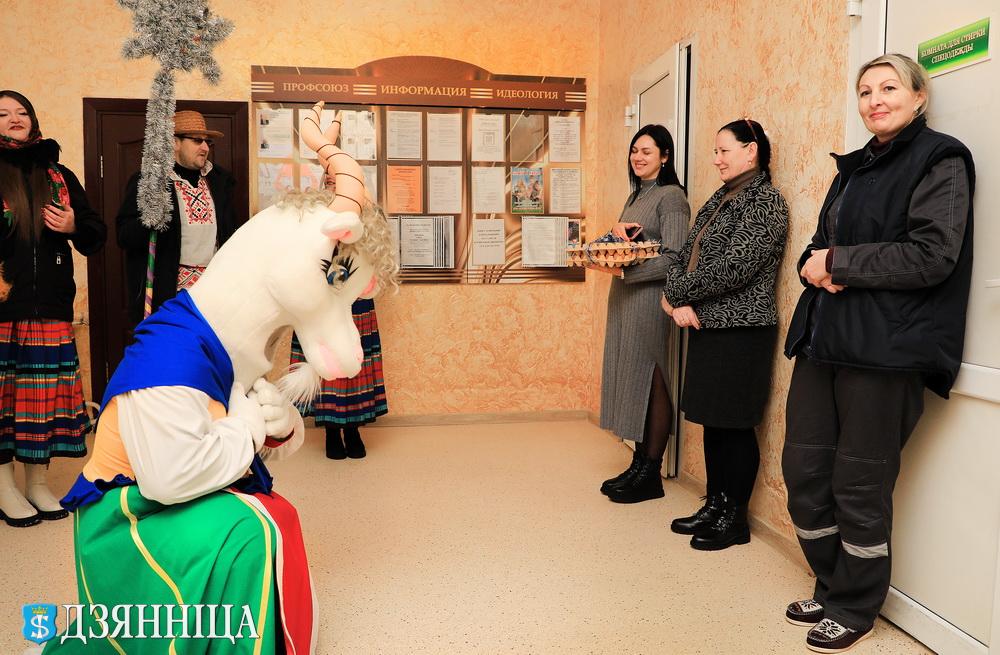 В Щучинском районе старинный славянский обряд Колядок обрел в этом году самобытное прочтение. Шумная процессия ряженых с колоритными одеяниями и обрядовыми песнями сменила привычные деревенские тропы на коридоры административных центров агропредприятий региона – ОАО «Демброво» и ОАО «Щучинская птицефабрика».