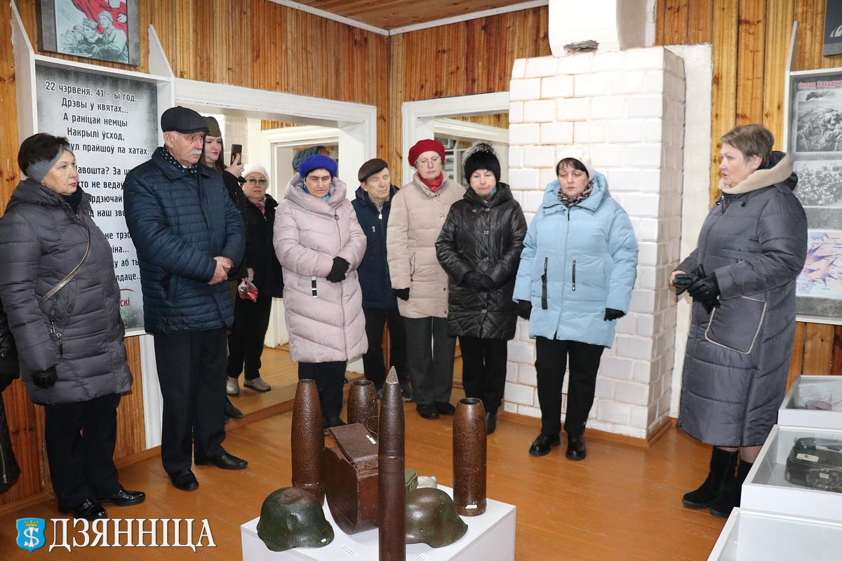 Далее маршрут продолжился к мемориальному комплексу “Музей. Землянка” в деревне Зачепичи. Учитель истории Орлевской средней школы им. С.П. Шупени Мария Седельник эмоционально и подробно рассказала о начале войны и партизанском движении на Щучинщине. Многочисленные фотографии и документы красноречиво говорили сами за себя, а ее рассказ вызвал слезы на глазах присутствующих, ведь почти в каждой семье кто-то не вернулся с войны. Особую ценность мероприятию добавили личные истории: невестка комиссара Николая Белякова Наталья Ивановна Белякова и внучка партизана Виктора Астаповича Елена Георгиевна Слушко поделились семейными воспоминаниями, согретыми теплотой и болью.