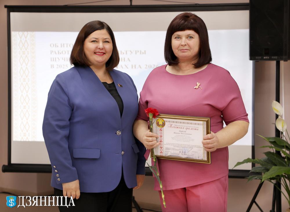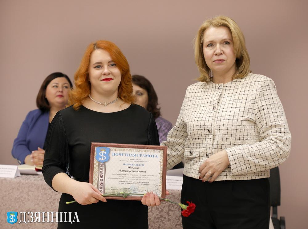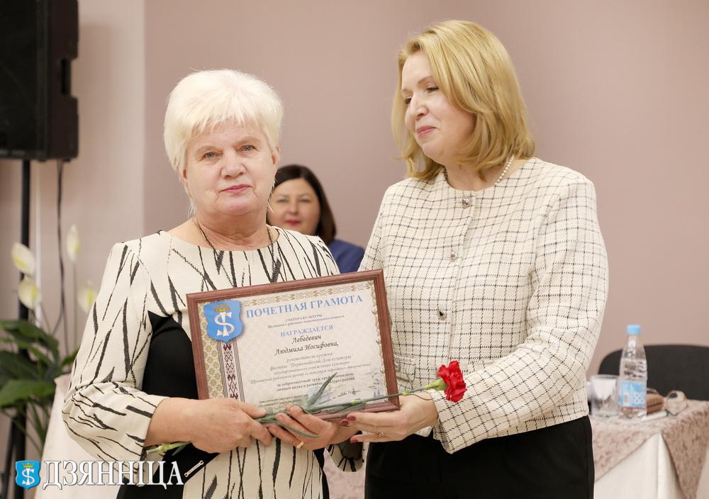 В завершение мероприятия Почетными грамотами управления культуры облисполкома и Щучинского райисполкома были награждены учитель Щучинской ДШИ Наталья Соболь и заведующий Раковичского Дома культуры Жанна Рыбак. За добросовестный труд, высокий профессионализм и значительный вклад в развитие культуры региона лучшие работники отрасли также были удостоены Почётных Грамот Щучинского сектора культуры.