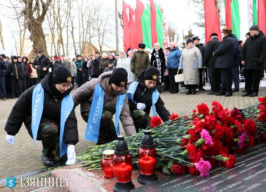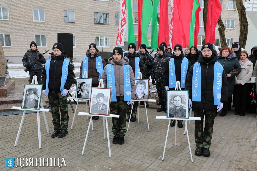 В нашей памяти навсегда останутся имена земляков, кто не смог вернуться живыми к своим семьям. Для нас они стали символом безупречного служения Родине и верности воинской присяге. Над памятным знаком повисла тишина: минута молчания в память о павших земляках. Юрий Остапович, Сергей Матюк, Дмитрий Удот, Генрих Хриптович, Юрий Петров, Константин Фалькович… Эти имена ежегодно повторяет молодёжь на митинге, и в это время их печальные глаза смотрят на нас с портретов – живых и вечно молодых воинов, которых, в казалось бы мирное время, забрала война.