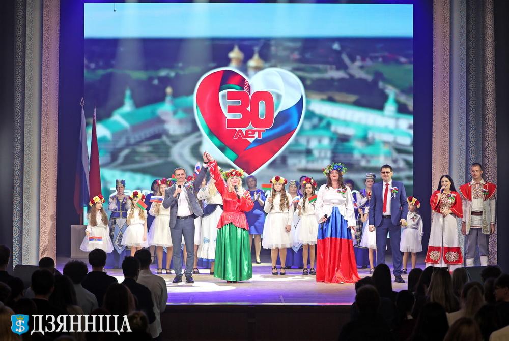 Ещё до начала официальной части фойе районного центра культуры встречало гостей тематической выставкой литературы, рассказывающей о тесных узах двух братских народов. Зрительный зал наполнился знакомыми мелодиями белорусских и российских патриотических песен, а два государственных флага символично развивались на сцене. Торжественным стартом концертной программы стало совместное исполнение двух гимнов.
